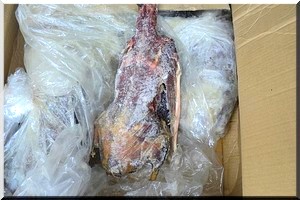 Les photos que nous publions montrent des spécimens d’oiseaux (fous bassans), espèce qui chasse en groupe, congelés et mis en carton dans leurs cales par des navires chinois sous l’étiquetage «Courbine». Aucune enquête publique n’a été annoncée après la découverte par des garde-côtes de cette cargaison inédite.