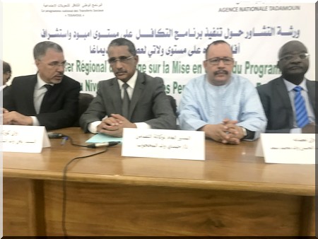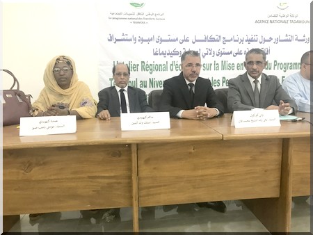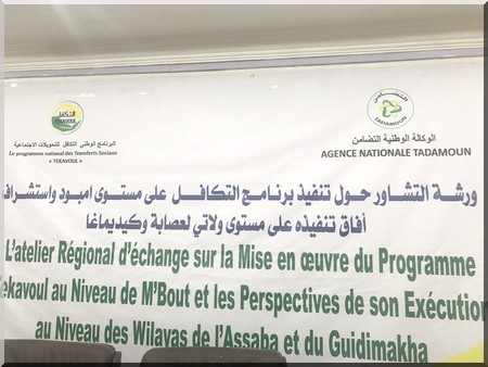TADAMOUN - Le Directeur Général de l’Agence Nationale TADAMOUN, Me Hamdi Ould Mahjoub, a présidé ce lundi 16 avril 2017 à l’hôtel Yewty à Kaédi les assises de l’atelier régional d’échange sur la mise en œuvre du programme Tekavoul au niveau de la moughataa de M’Bout et les perspectives de son exécution au niveau des wilayas de l’Assaba et du Guidimakha.